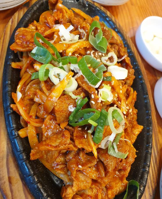 두루치기 정식은 매콤하게 볶은 돼지고기와 각종 채소가 어우러져 자극적이지 않으면서도 감칠맛 나는 메뉴입니다. 고기의 질도 좋고 양도 넉넉하여 남성 손님들에게 인기가 많습니다.