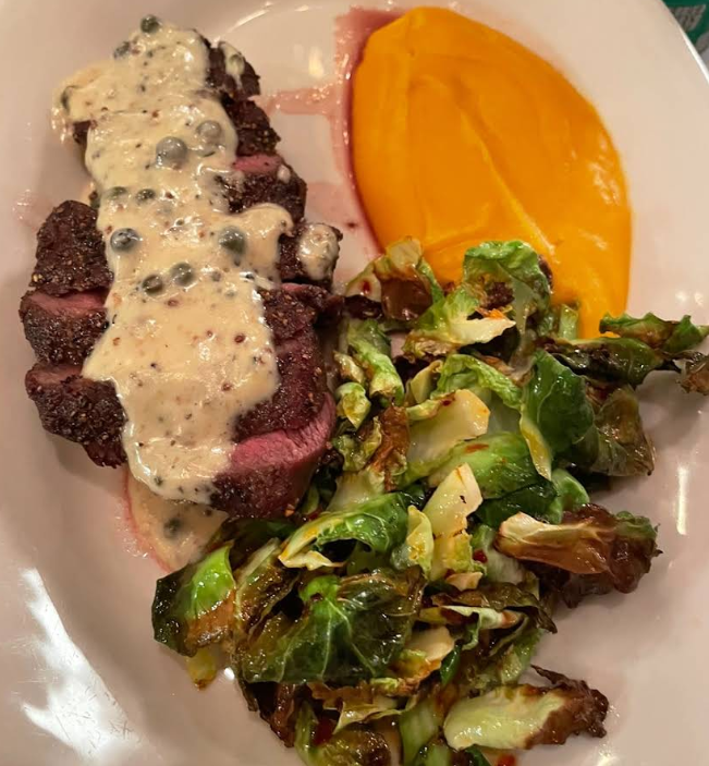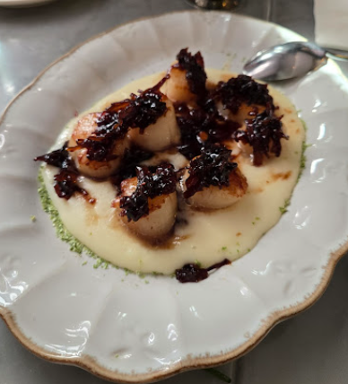 구운 고트치즈와 모과콤포테 샐러드 역시 따뜻한 치즈와 달콤한 모과의 앙상블로 미식과 미감을 동시에 충족시킵니다. 플레이팅이 정교하고 감각적이어서 데이트, 모임, 사진 촬영에 모두 잘 어울립니다.