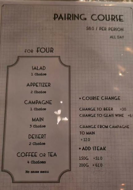 | PER PERSON (1인 코스) | 58,000원 | 계절별 구성의 미니멀 코스 다이닝 |